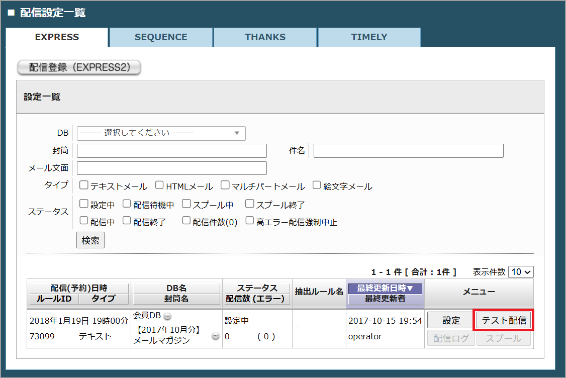 スパイラルでは「EXPRESS2」の機能を利用することで、DB内のメールアドレスに対して一斉配信をすることができます。