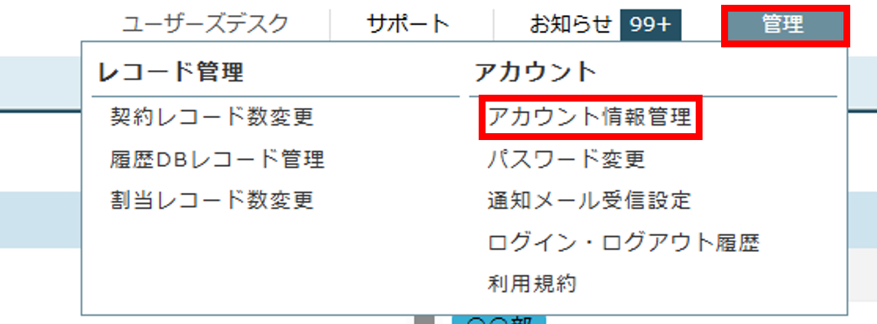 画面右上の[管理]>[アカウント情報管理]に進みます。
