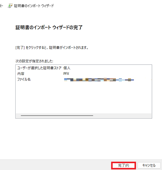 以上で証明書のインポートは完了です。