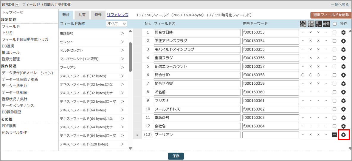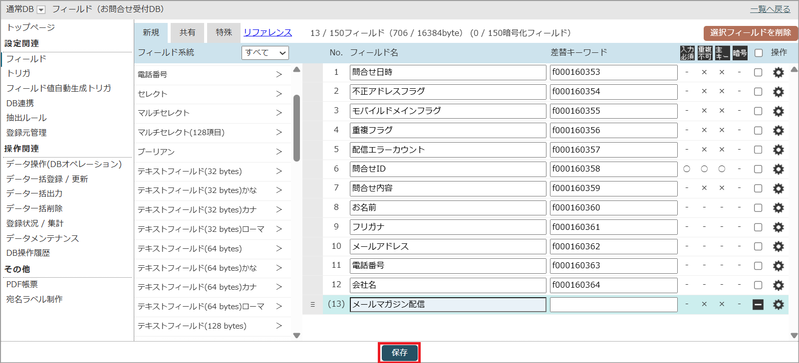 最後に「保存」ボタンをクリックして、DBへのフィールドを追加を完了します。