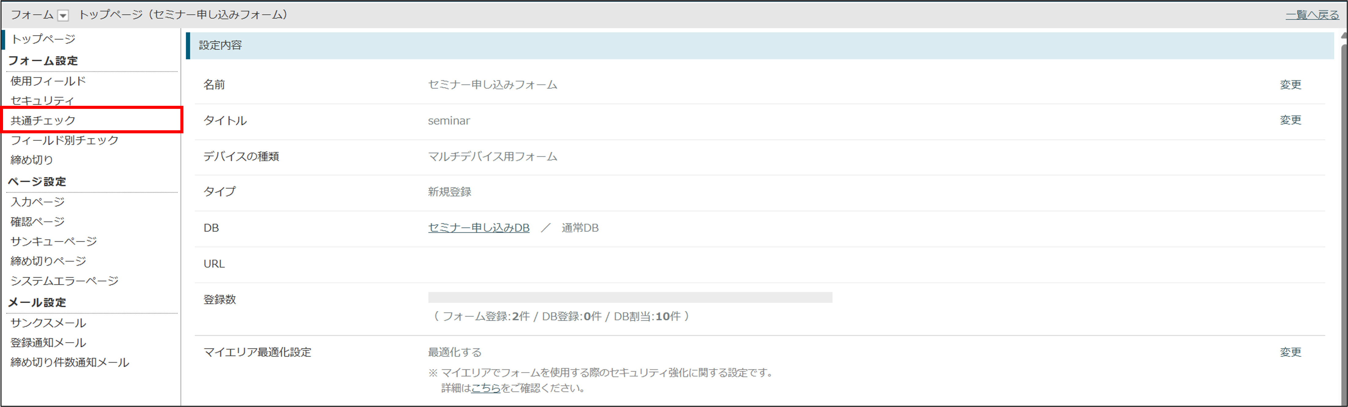 ※フォームから登録テストを行う場合、既に登録されているデータについて、