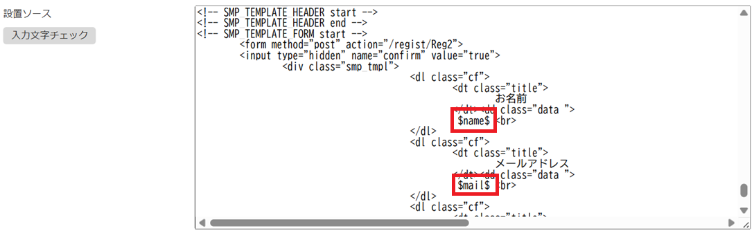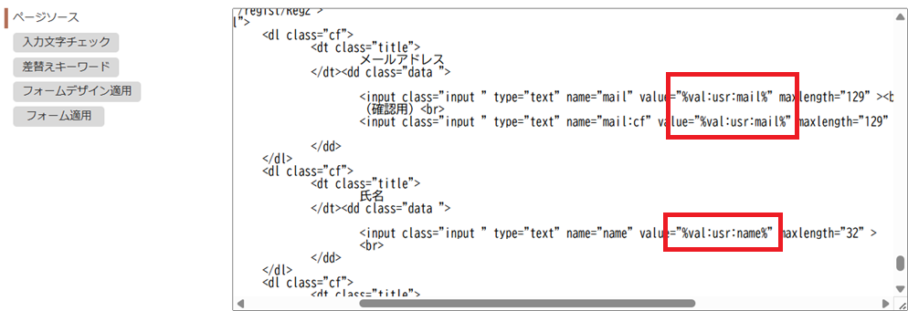確認ページ上に差替えキーワードを設定すると、入力ページで入力した値を引き継いで表示することが可能です。