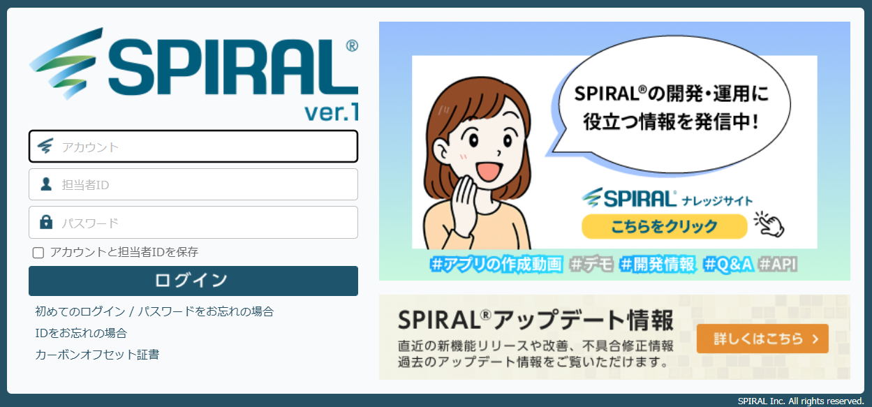 SPIRALver.1のログイン画面