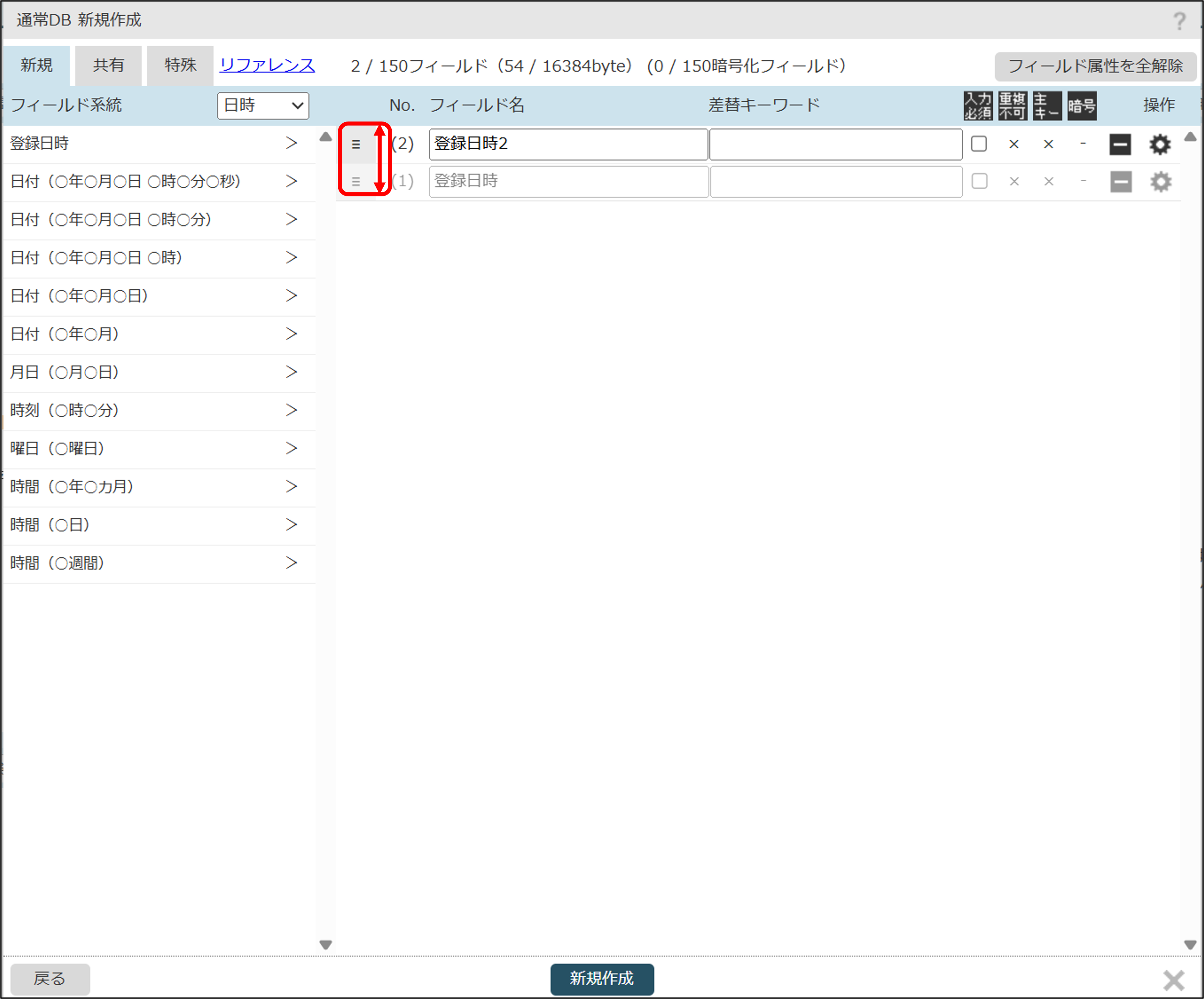 また、追加されたフィールドは、ドラッグアンドドロップで並び替えることができます。
