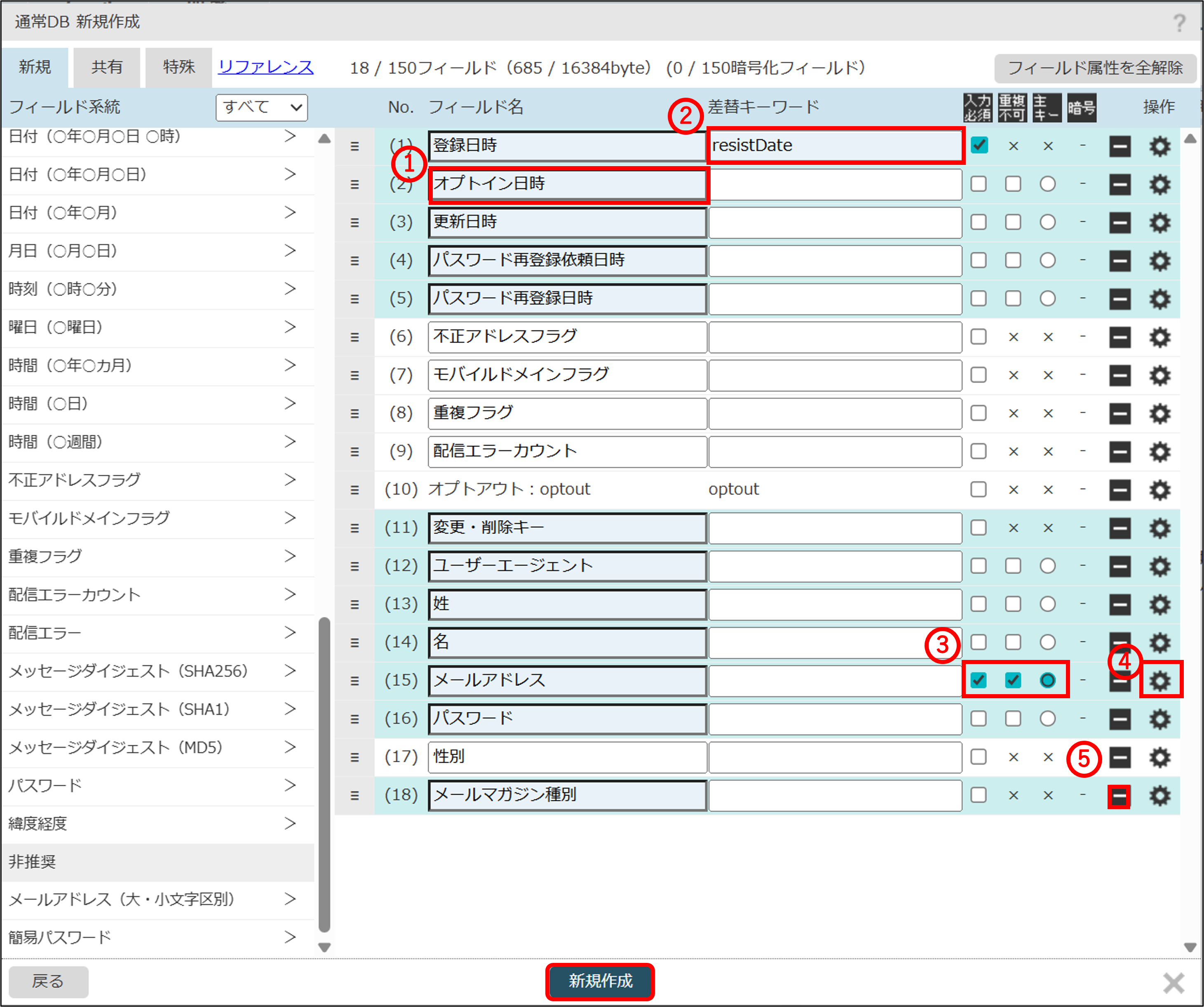 ⑤フィールド削除