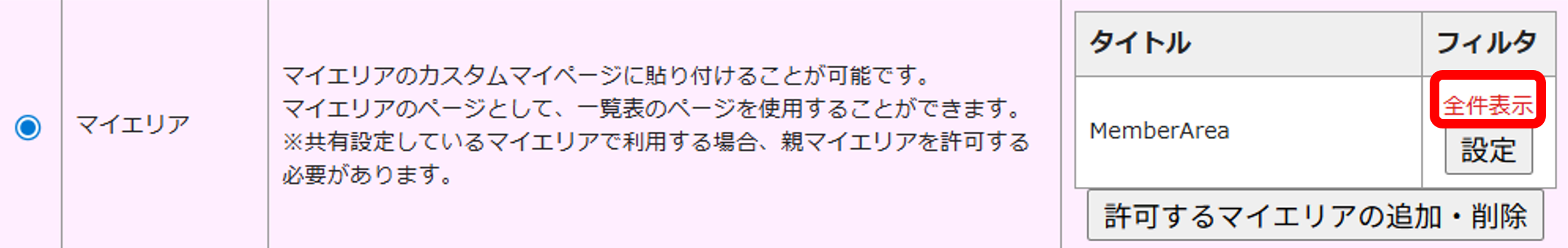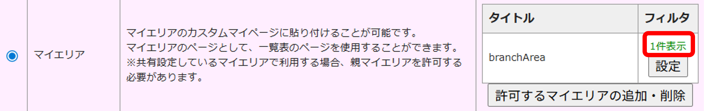 また、マイエリアの「マイエリア許可ページ」から一覧表の設定を追加することも可能です。