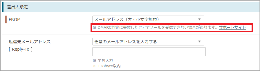 また、設定後はDMARC認証に失敗する可能性がある旨の文言を下部に追加します。