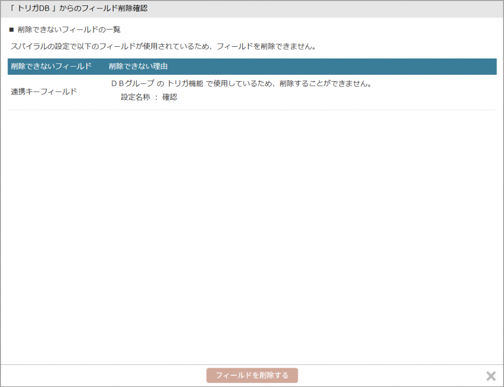 フィールドをDBから削除する際、対象のフィールドがルックアップトリガの「複数レコード抽出された場合のソート」として
