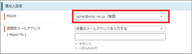 「FROM」を「spiral@smp.ne.jp」で設定することを推奨設定とします。