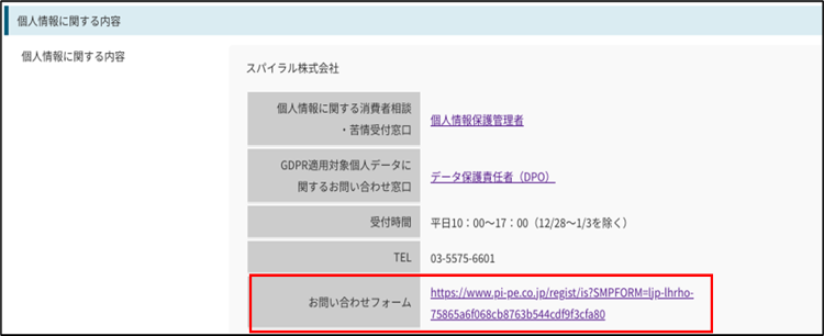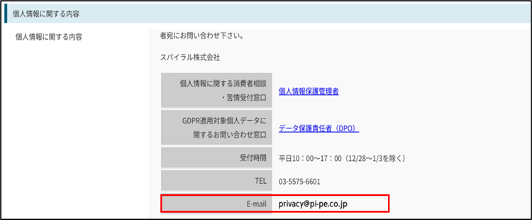 各ID情報を変更する際などに表示される「個人情報に関する内容」の問い合わせ先を変更いたします。