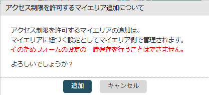 ▼許可マイエリア「追加」時の注意モーダル