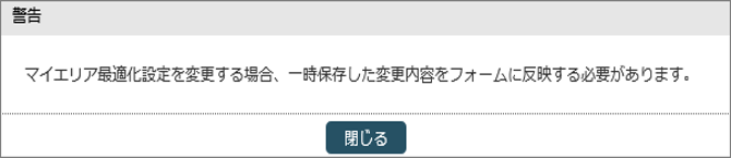 なお、マイエリア最適化の設定変更時、一時保存したフォームの変更がある場合は警告モーダルが表示されます。