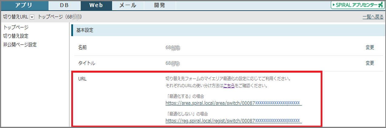 切り替えURL機能の「切り替え先」をフォームに設定している場合、切り替え先フォームの「マイエリア最適化」設定に応じて