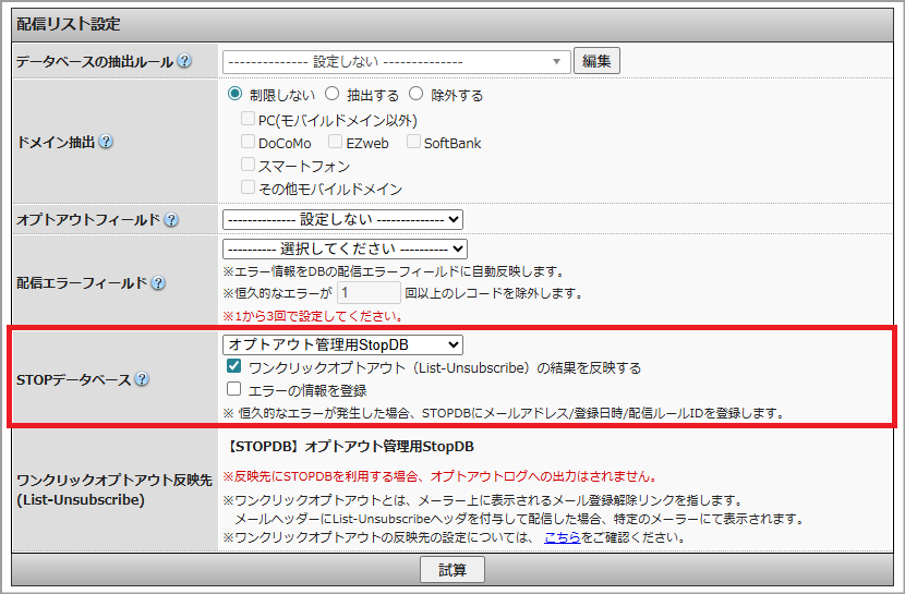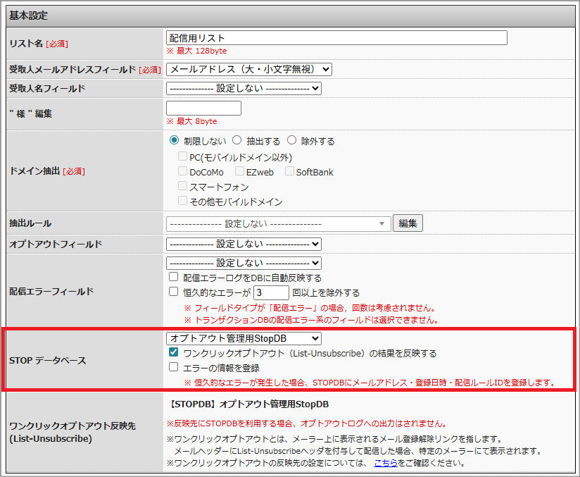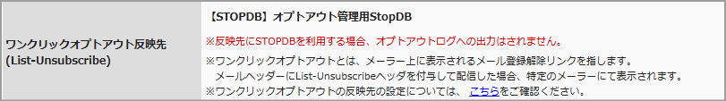 「STOPデータベース」の項目の下に「ワンクリックオプトアウト反映先(List-Unsubscribe)」の項目を追加しますので、