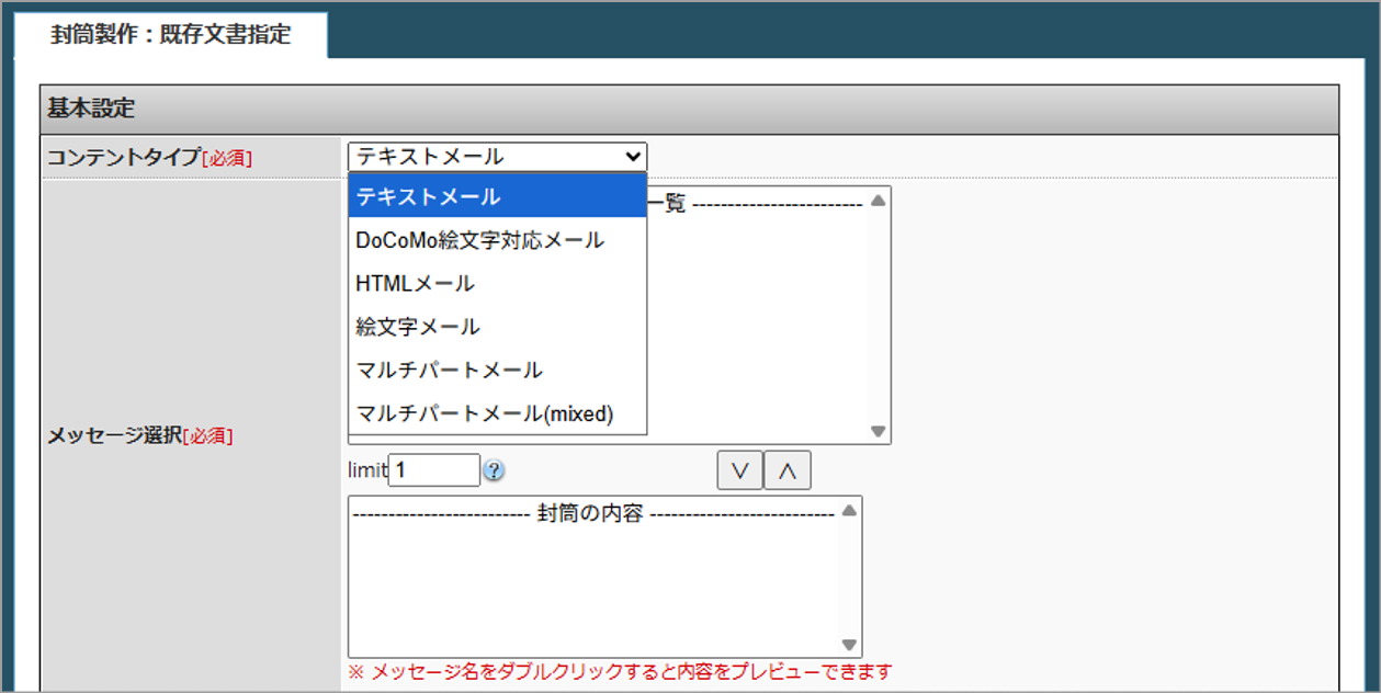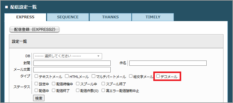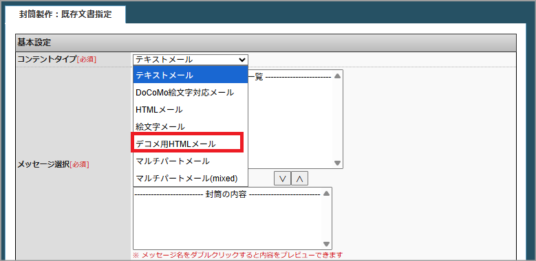 【アプリ、配信設定一覧、EXPRESS2、封筒製作:既存文書指定、封筒作成(直接入力)】