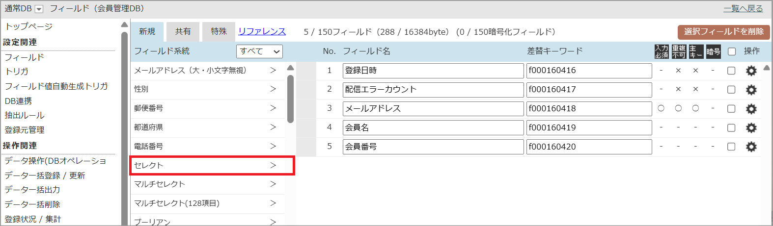 ※「1.DBの設定手順」で設定したセレクトフィールドの設定の場合は「1」を入力します。