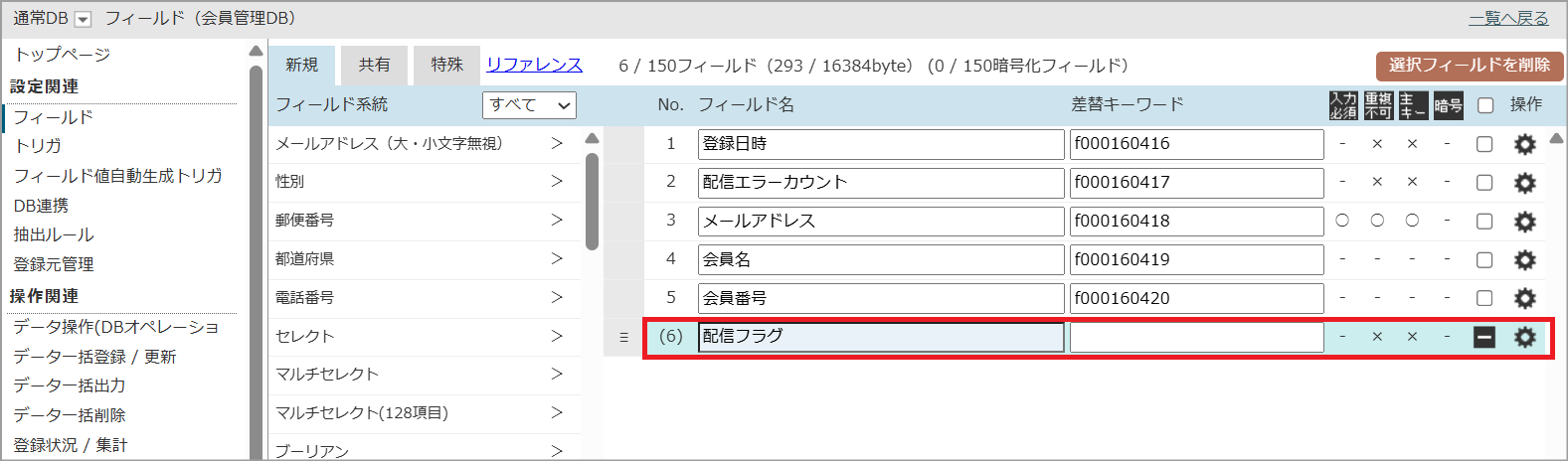 フィールド名を「配信フラグ」や「当選フラグ」など利用用途が分かりやすい名称に変更します。